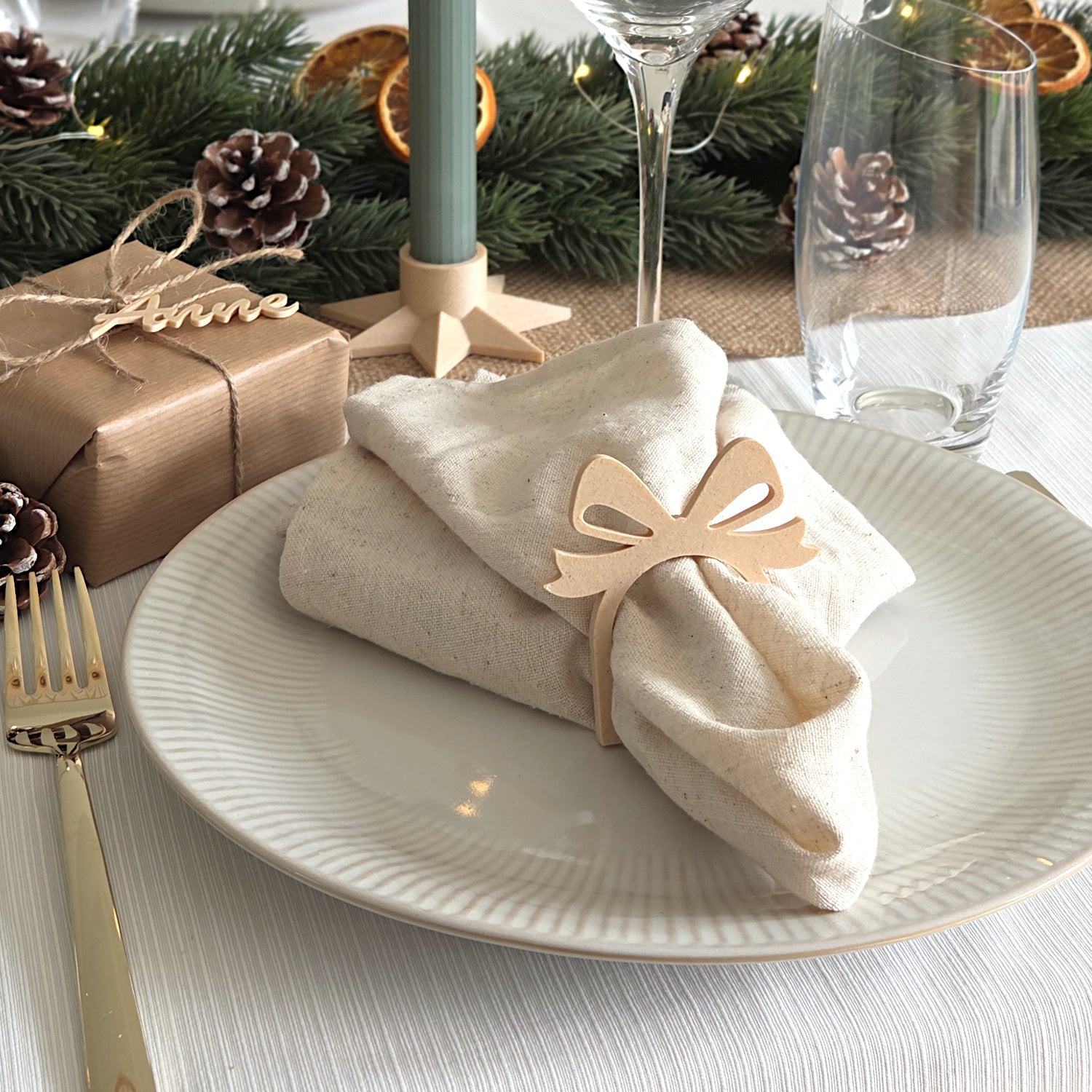 Servietring Sløjfe kommer som et sæt med 4 og bringer en varm, stemningsfuld detalje til julebordet. Den enkle sløjfeform giver et roligt og elegant udtryk, der passer smukt ind i både klassisk og moderne borddækning.